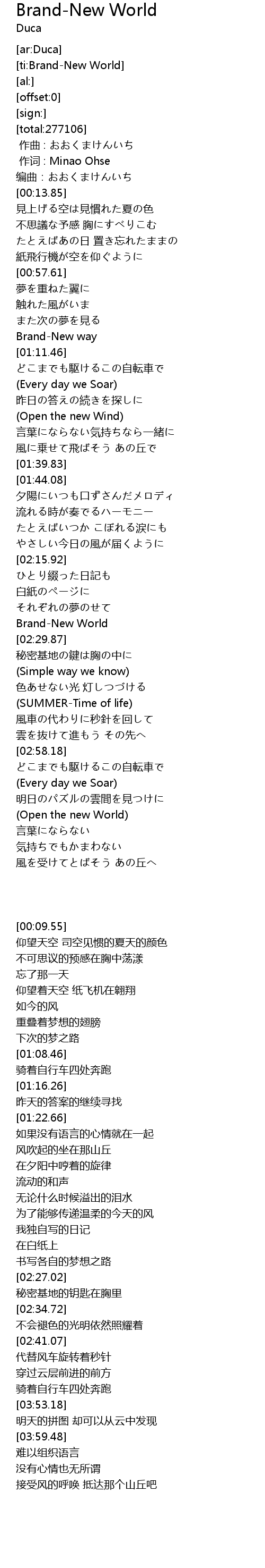 Brand New World Lyrics / Sora takaku hata kazashi dare ni mo misenai namida mo aru keredo oikakete!